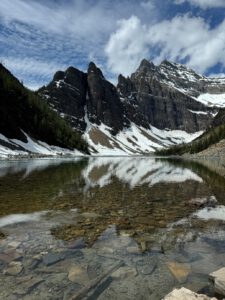 Wir entschieden uns, die 3,5 km lange Strecke (einfache Tour hin) vom Lake Louise zum Lake Agnes zu wandern. Am Zielpunkt steht ein niedliches Tea House, welches neben natürlich Tee in allen Sorten auch ein paar Snacks anbietet. Einfach ein Traum, um etwas zu entspannen. Bemerkenswert ist, dass ein Großteil der Lebensmittel jeden Tag von den Mitarbeitern zum Tea House hochgetragen und der Müll auch wieder heruntergebracht wird. Wobei ein paar Sachen wohl auch mit dem Helikopter angeliefert werden…